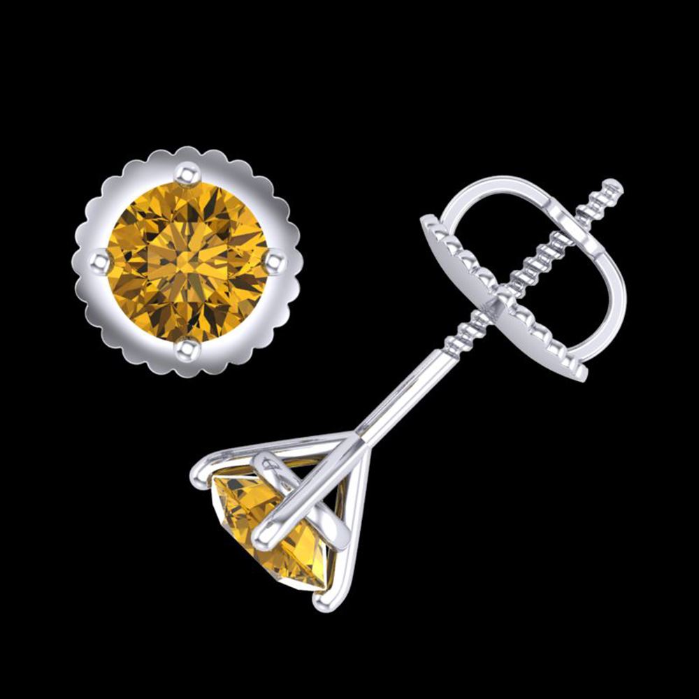 REF-61N4F - SKU: 38225 ---- 0.65 ctw Intense Fancy Yellow Diamond Art Deco Earrings 18k White Gold