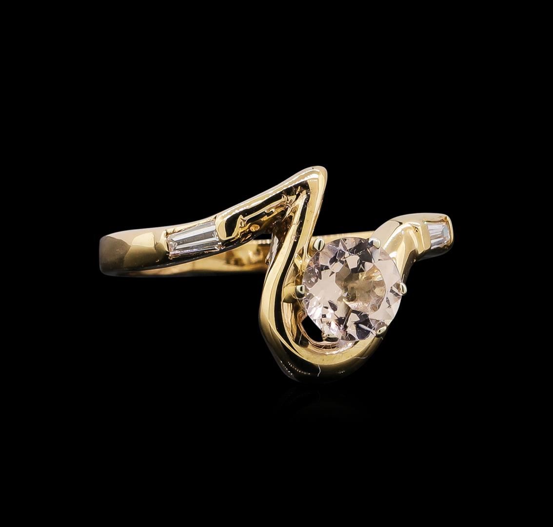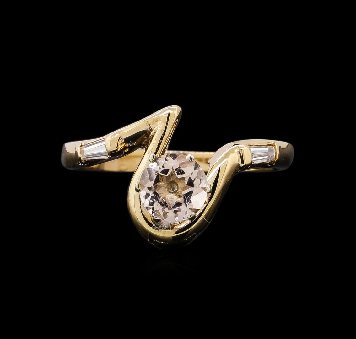One ring : 14KT rose gold weighing 3.45gm containing one morganite with a total weight of 0.65ct and diamonds weighing 0.5ctw.