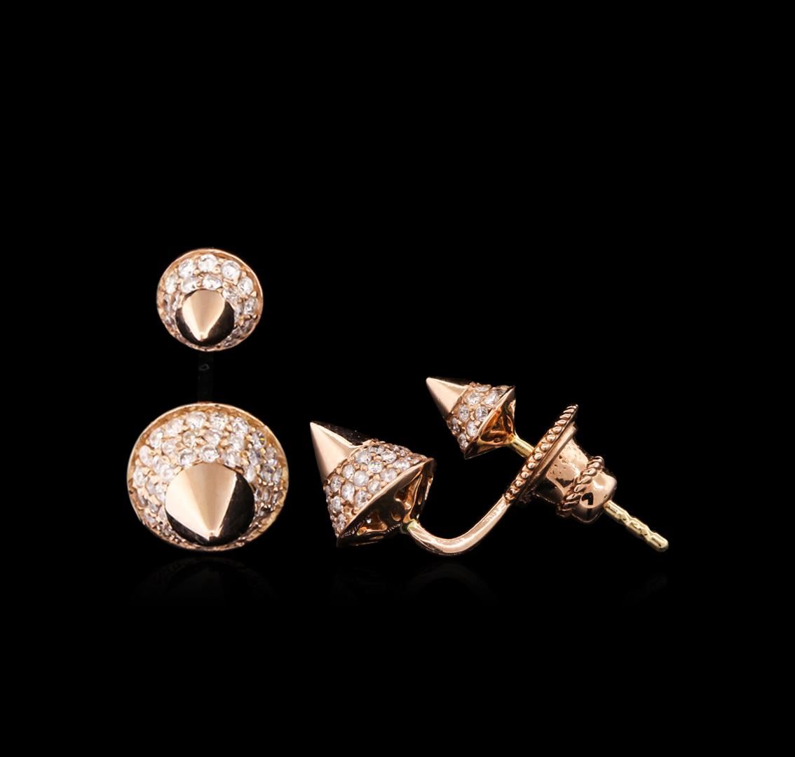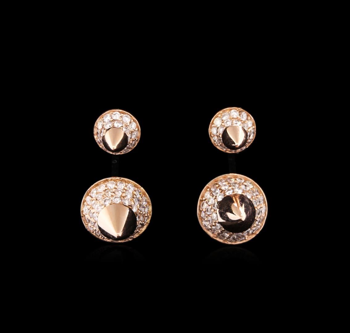 One pair of earrings featuring: 14KT rose gold weighing 4.45 grams containing 140 diamonds with a total weight of 0.65ct.