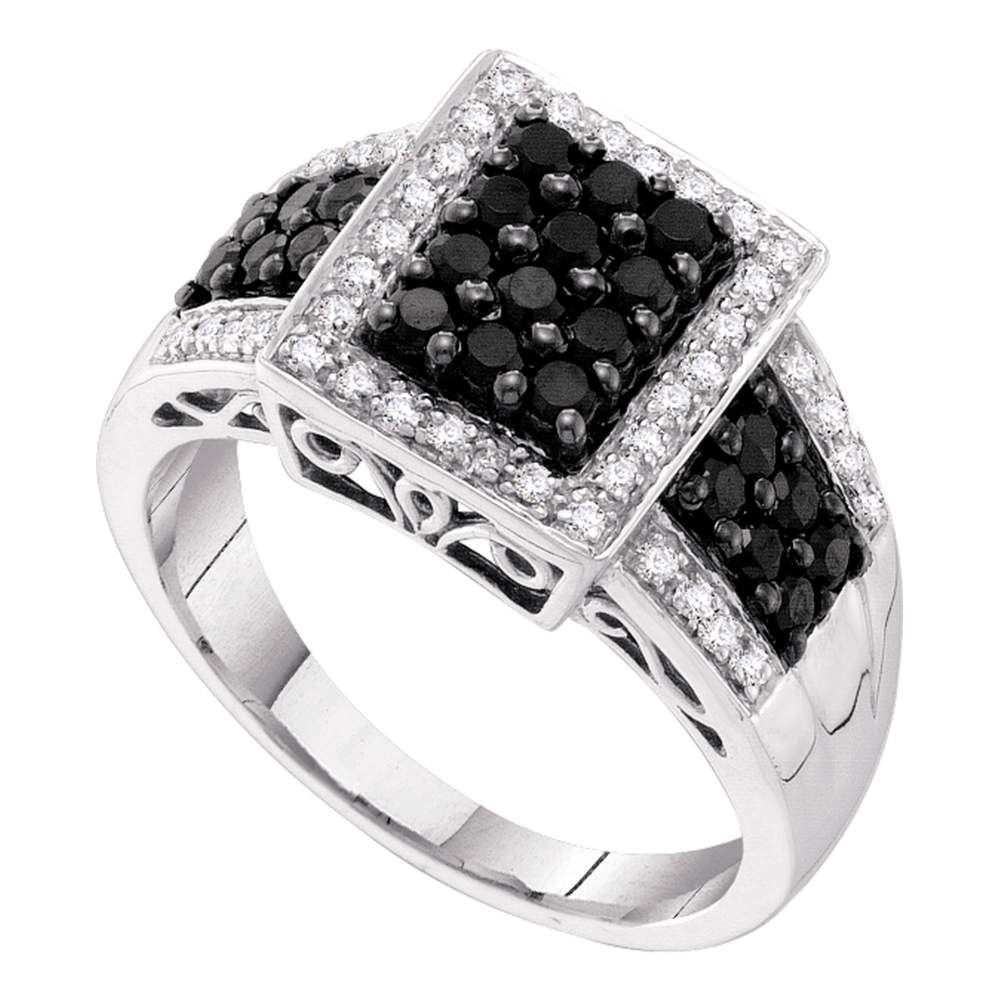 REF-41N9F- SKU: GD57503 ---- 0.66 CTW Black Color Diamond Rectangle Cluster Ring 14KT White Gold