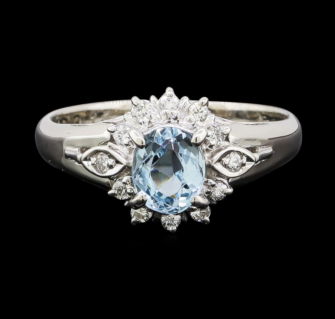 One ring featuring: Platinum containing Aquamarine with a total weight of 0.66ct and Diamonds with a total weight of 0.13ct. Total Weight of Ring: 5.2 grams.