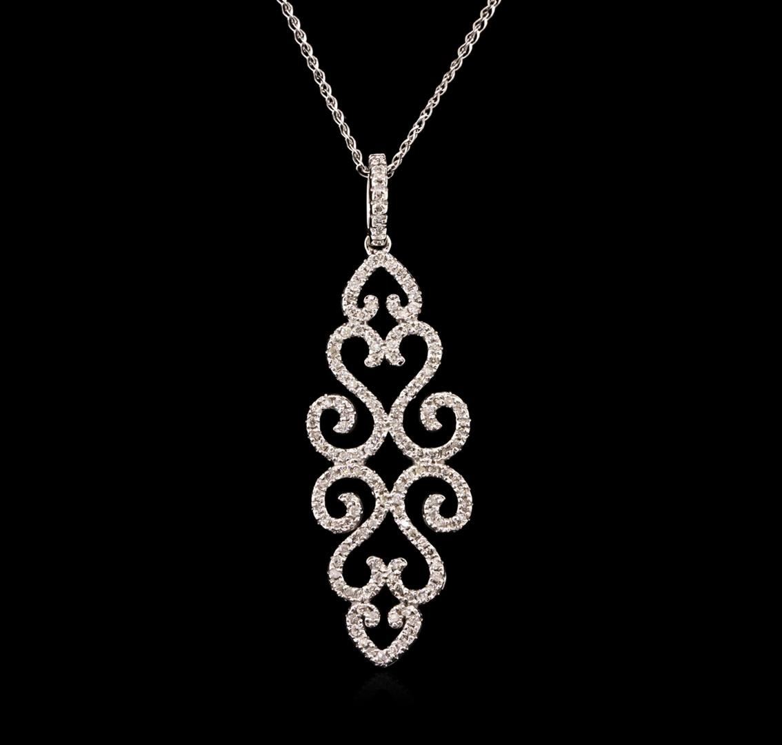 One pendant with chain featuring: 14KT white gold weighing 3.80 grams containing 145 diamonds with a total weight of 0.66ct.