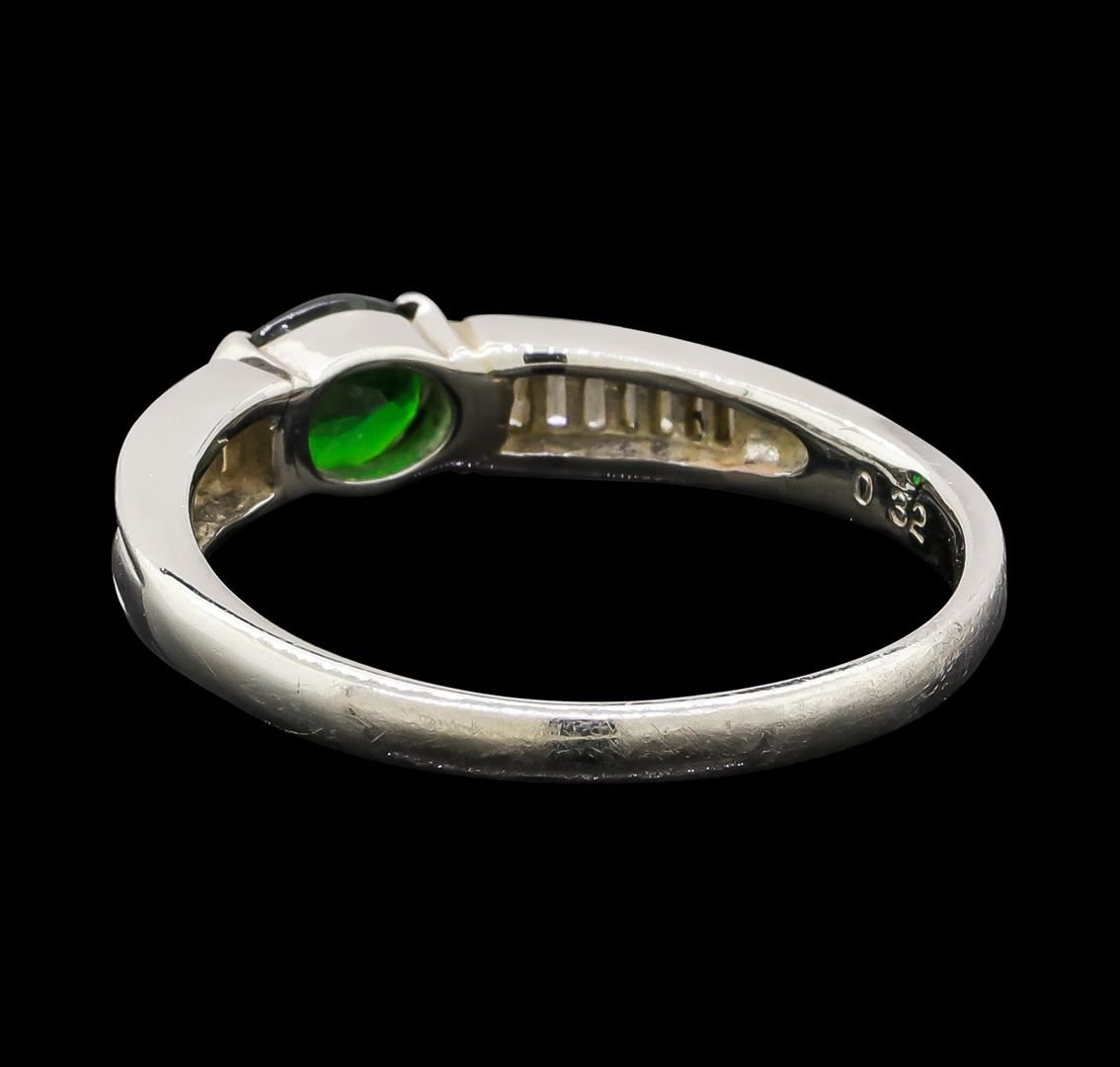 One ring featuring: Platinum containing Green Garnet with a total weight of 0.66ct and Diamonds with a total weight of 0.32ct. Total Weight of Ring: 5.2 grams.