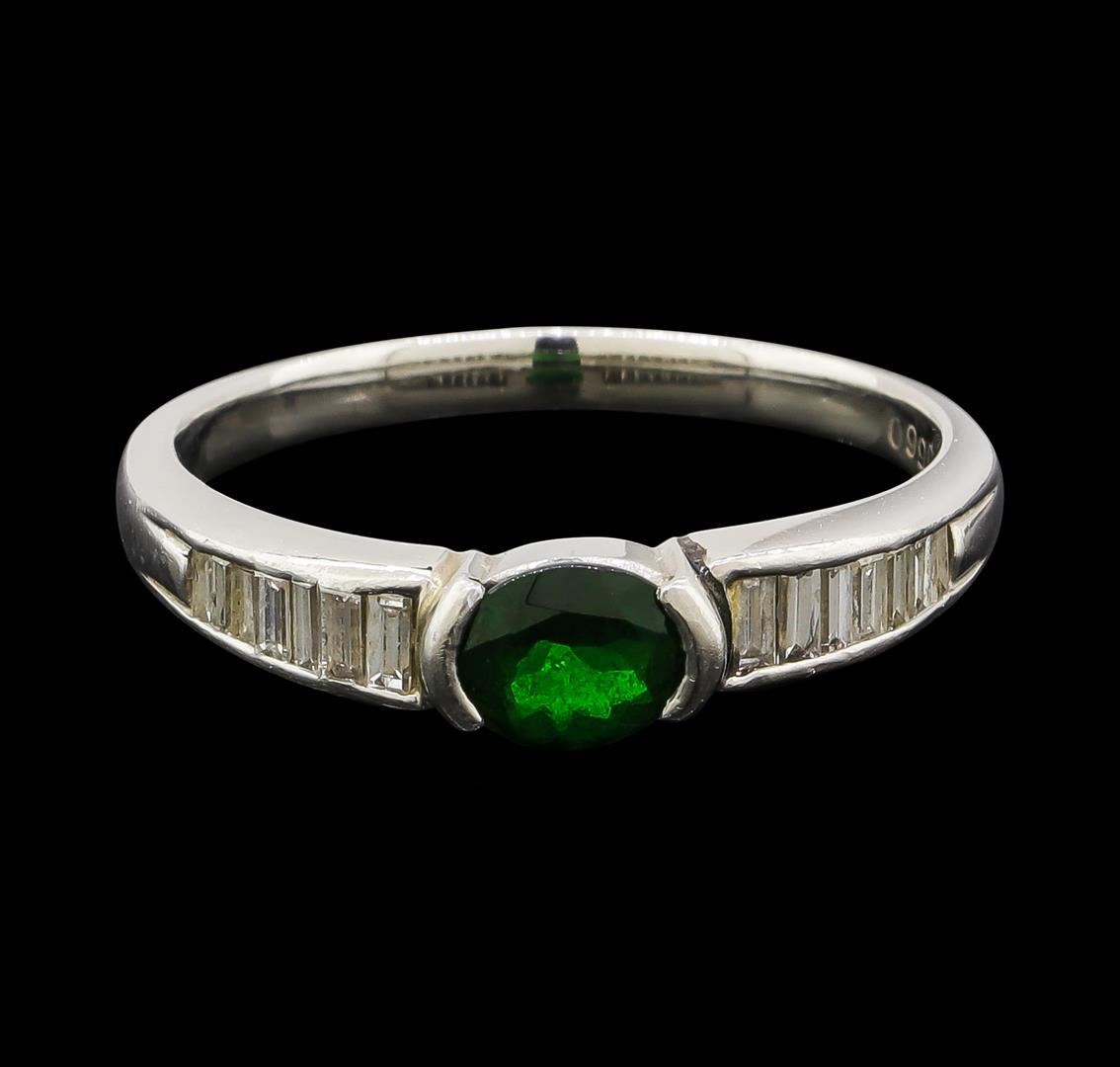 One ring featuring: Platinum containing Green Garnet with a total weight of 0.66ct and Diamonds with a total weight of 0.32ct. Total Weight of Ring: 5.2 grams.