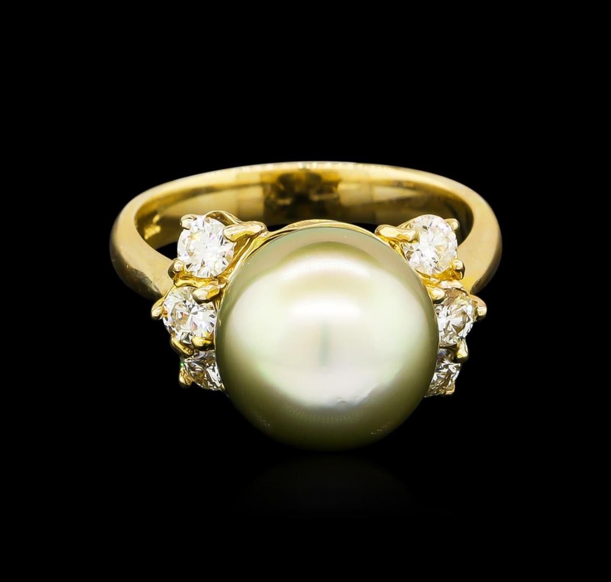 One ring featuring: 14KT yellow gold weighing 4.22 grams containing one pearl and side diamonds with a total weight of 0.66ct.