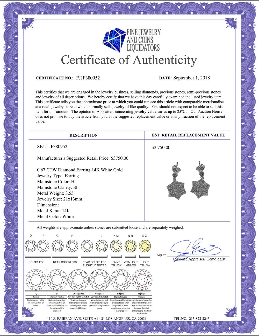 REF-48N2Y - JF380952 ---- 0.67 CTW White Round Diamond Earring 14K White Gold