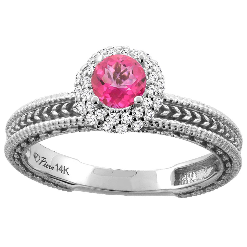 REF-53M3A - SKU: SC-CY406373 ---- 0.67 CTW Pink Topaz & Diamond Ring 14K White Gold