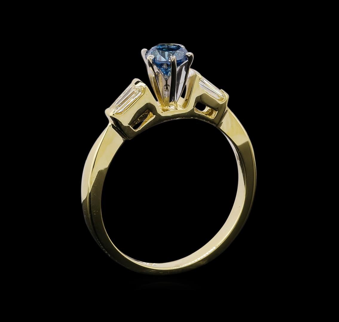 One ring : 14KT yellow gold weighing 3.02gm containing one blue diamond with a total weight of 0.47ct and diamonds weighing 0.2ctw.