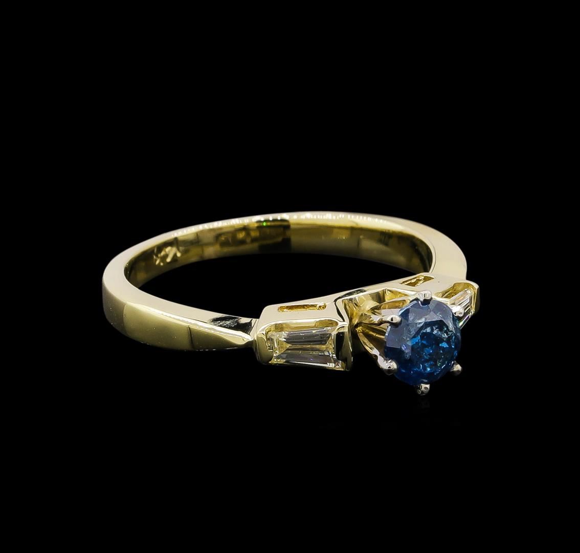 One ring : 14KT yellow gold weighing 3.02gm containing one blue diamond with a total weight of 0.47ct and diamonds weighing 0.2ctw.