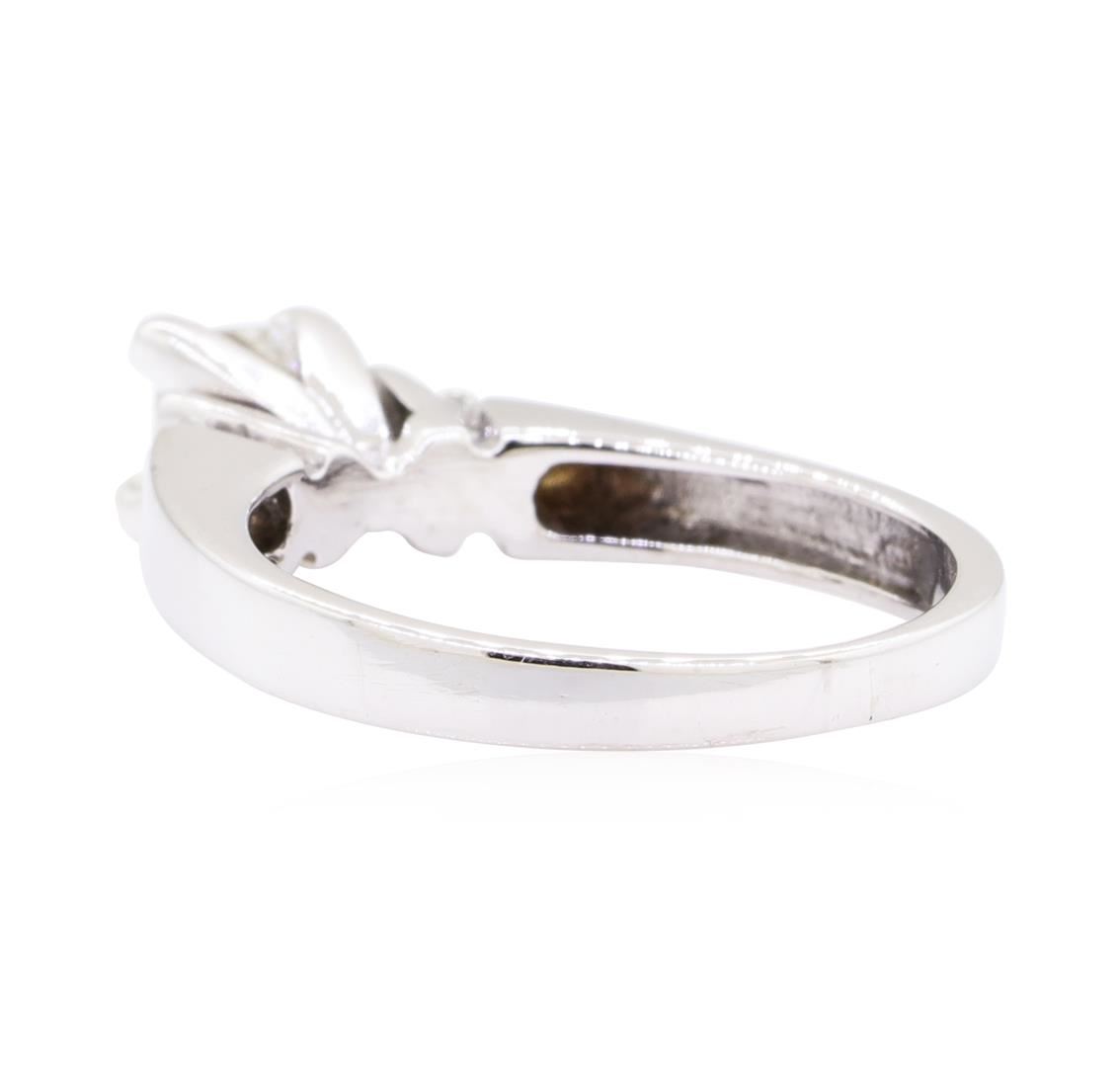 One electronically tested 14KT white gold lady's combination cast & assembled engagement ring with a tapered cathedral shank with a bright polish finish. The featured lady's ring has a shank measuring 2.10 millimeters wide. Identified with markings of '14K'. Condition is new, good workmanship. Containing: One prong set princess cut diamond, measuring 4.68 x 4.55 x 3.41mm (depth est.) approximate weight of 0.60ct. Graded in the setting. Color I Clarity SI-2 Cut Very Good Four channel set round brilliant cut diamonds, measuring 1.70 - 1.65 x 1.04mm (depth est.) approximate total weight of 4 Stones = 0.07ct. Graded in the setting. Color G - H Clarity VS-1 to VS-2 Cut Very Good. Total Weight of Diamonds 0.67ct.. Total Weight of Ring 3.40gm GAS Appraised at  $3800.00. GAS Appraised at $3,800.00.