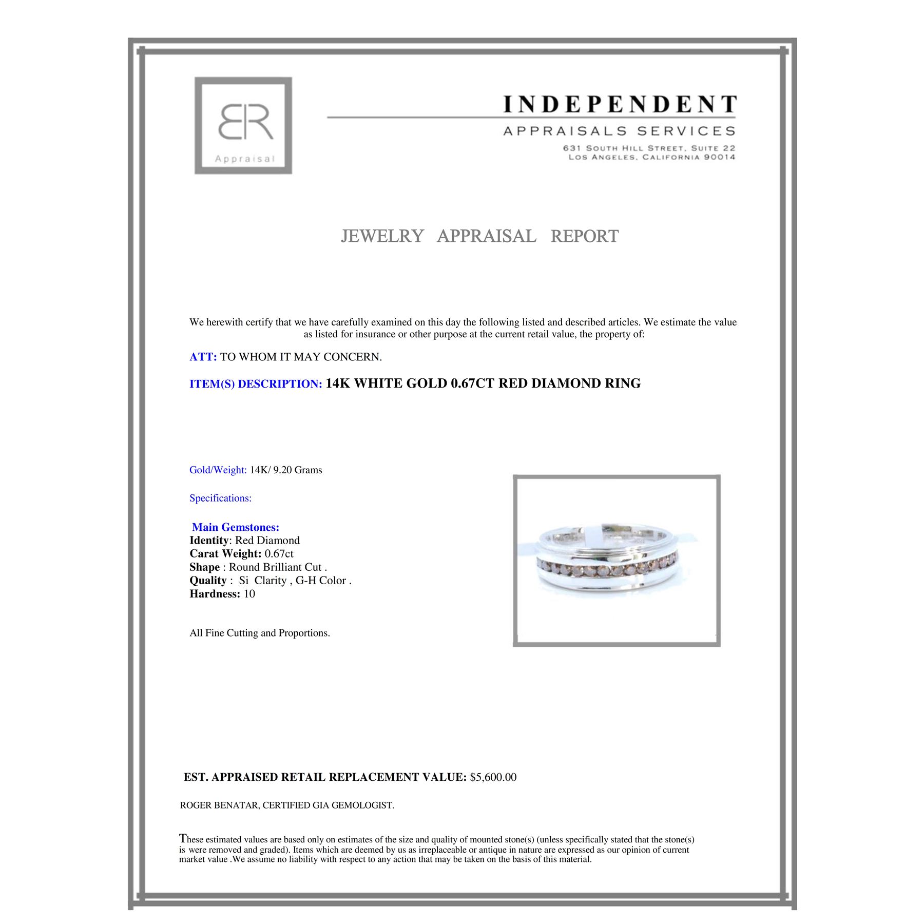 14K W/G RED DIAMOND RING: 9.20GM/NATURAL RED DIAMOND/RED DIAMOND :0.67CT/#GVR1384