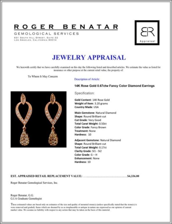 Regarding Appraised Jewelry and Loose Stones - Auctionfarm sends them out to a third party for Retail Replacement Value Appraisals, which are the most common. These types of evaluations are written for insurance needs. This would be the cost to replace the jewelry with an item of equal quality and kind, considered to be the current market price or the replacement value. This type of appraisal is done to protect you in the event of damage or loss of a valuable item. Our appraisals are conducted by independent 3rd Party appraisal firms that utilizes Certified GIA Gemologist. Appraisals should be used for verification of gemstone and/or metal weight, size, and grade only, not actual value. Appraisal value should be considered for insurance purposes only, not actual value, as price varies greatly from retail locations thru out the world. Items should not be purchased with the expectation to resell for appraisal price, or for profit.