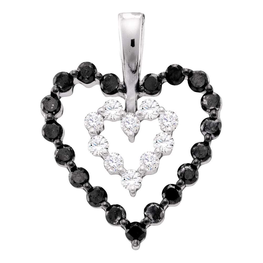 REF-24N2F- SKU: GD54198 ---- 0.68 CTW Black Color Diamond Double Nested Heart Pendant 14KT White Gold