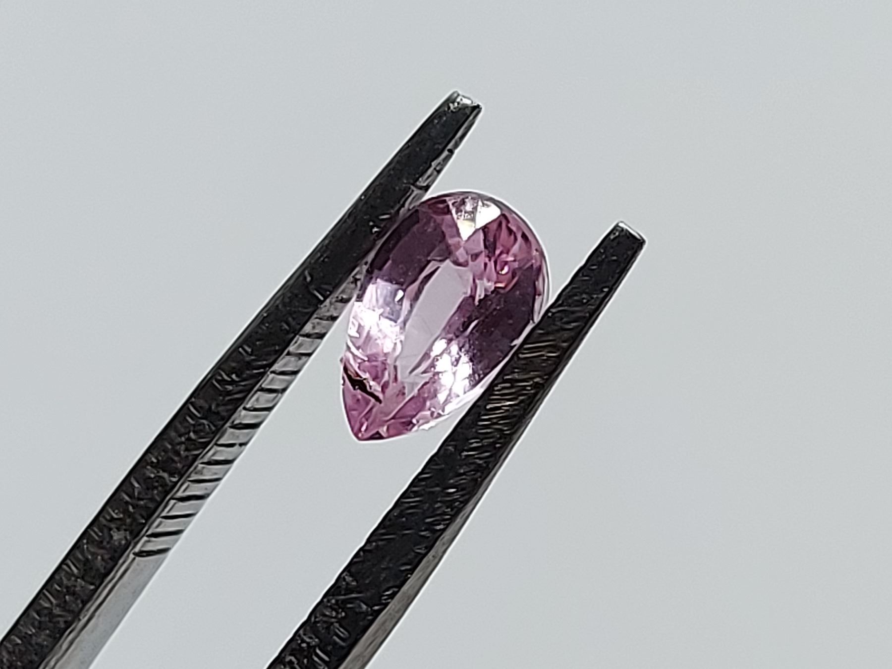 0.68 ct. 6.5 x 4.4 x 3.1 mm Colour: PINK, Shape: Pear, Clarity: VVS-Eye Clean, Luster: Exceptional, Origin: Madagascar Unheated and Untreated
