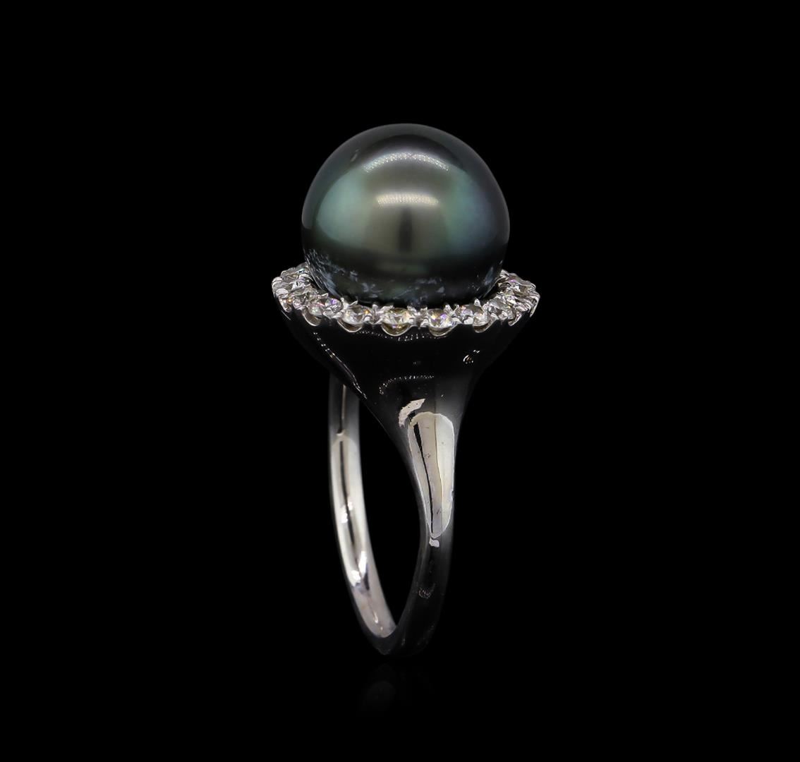 One ring featuring: 14KT white gold weighing 6.68 grams containing one pearl and side diamonds with a total weight of 0.68ct.