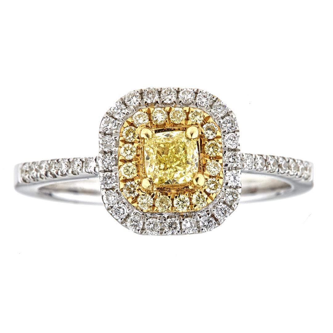 One lady's ring featuring: 18KT white and yellow gold weighing 3.94 grams containing yellow diamonds weighing 0.45ctw and white diamonds weighing 0.23ctw.