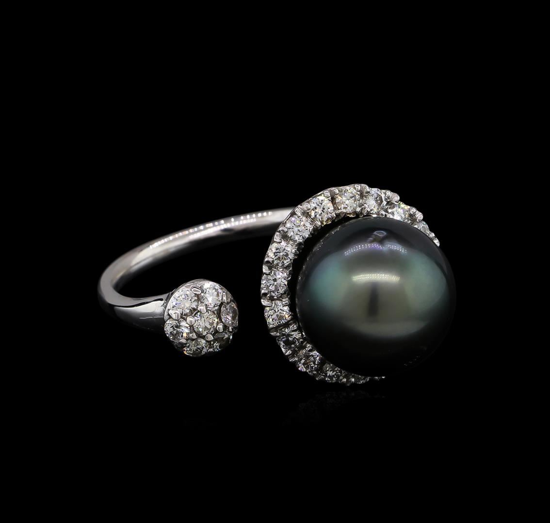 One ring featuring: 14KT white gold weighing 6.68 grams containing one pearl and side diamonds with a total weight of 0.68ct.