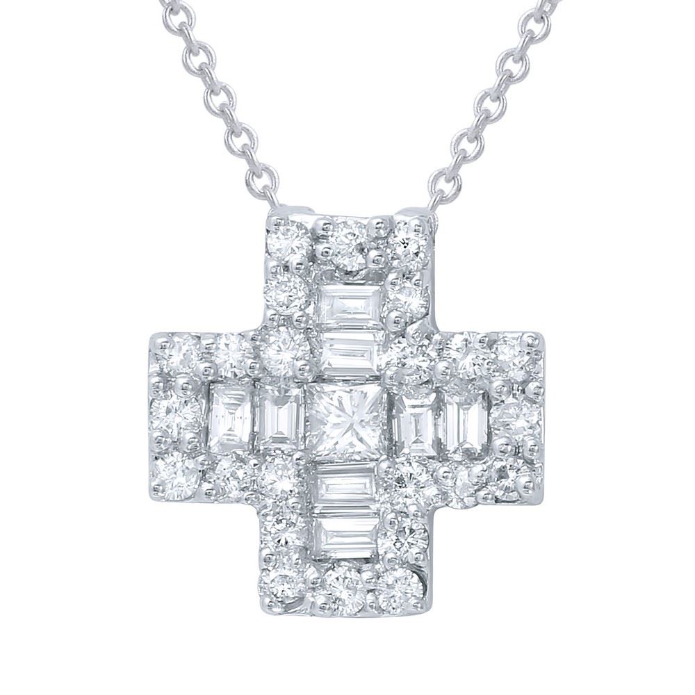 REF-72W2H - JF252992 ---- 0.69 CTW White Round Diamond & Baguette Necklace 18K White Gold