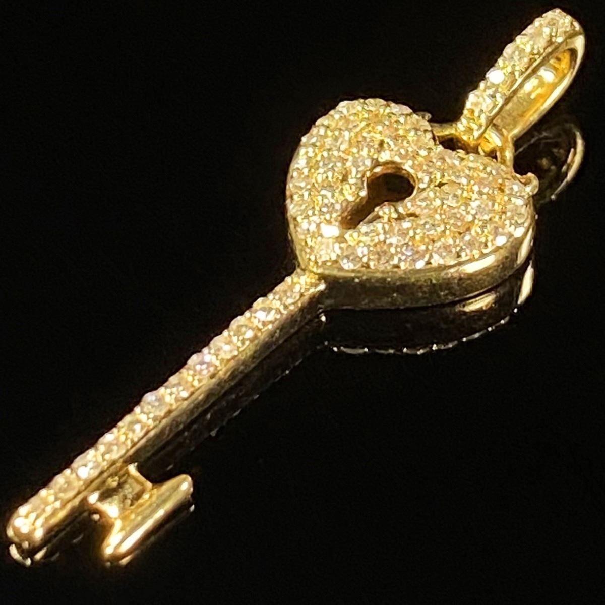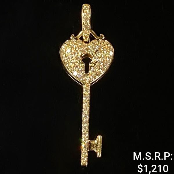 0.7 DWT 10 KT Gold Key Pendant w/ Diamond Lining