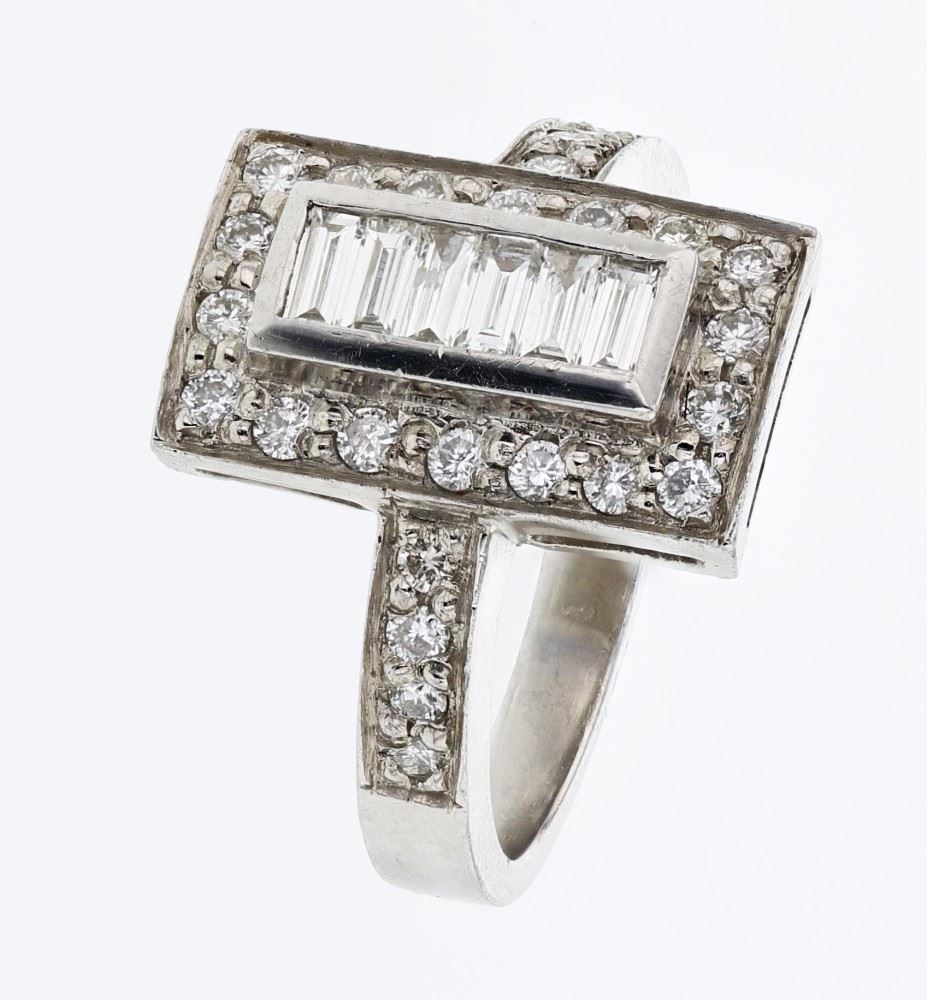 REF-107Y4X - JF267247 ---- 0.7 CTW White Round Diamond & Baguette Ring Platinum