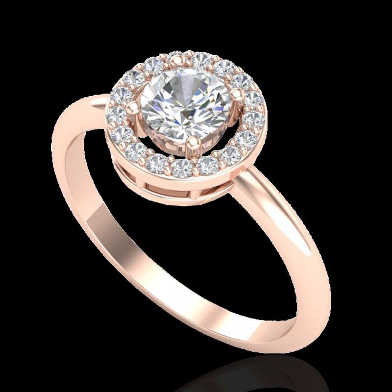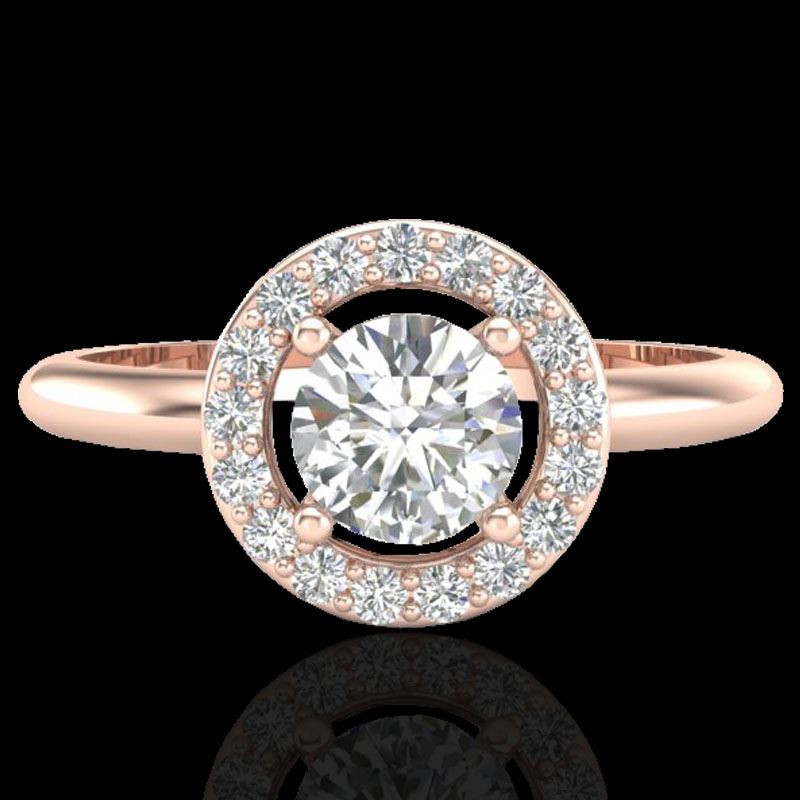 REF-101W3F -23288 ---- 0.70 CTW Micro Pave Halo Solitaire VS/SI Diamond Ring 14K Rose Gold ---- Luxury Designer Brand Ring Appraised at $5,000 Certificate Number US23288  14k Rose gold,  Ring Size is 6.5, Ring measuring approx. 3/8" X 3/8" , weighing in total approx. 3.5 grams. Made in the USA and is stamped 14k, Main stone 0.54 carat total weight containing 1 pieces of H-J color with VS/SI quality Round shape cut Diamond , Stone #2 0.16 carat total weight containing 16 pieces of H-I color with  VS/SI quality Round shape cut Diamond