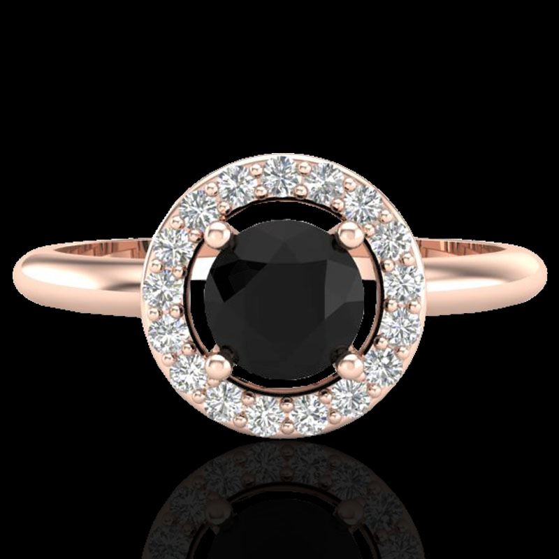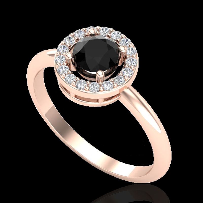 REF-47W8F -23286 ---- 0.70 CTW Micro Pave Halo Solitaire VS/SI Diamond Ring 14K Rose Gold ---- Luxury Designer Brand Ring Appraised at $2,900 Certificate Number US23286 14k Rose gold, Ring Size is 6.5, Ring measuring approx. 3/8" X 3/8" , weighing in total approx. 3.5 grams. Made in the USA and is stamped 14k, Main stone 0.59 carat total weight containing 1 pieces of Black Opaque color with VS quality Round shape cut Diamond , Stone #2 0.16 carat total weight containing 16 pieces of H-I color with VS/SI quality Round shape cut Diamond