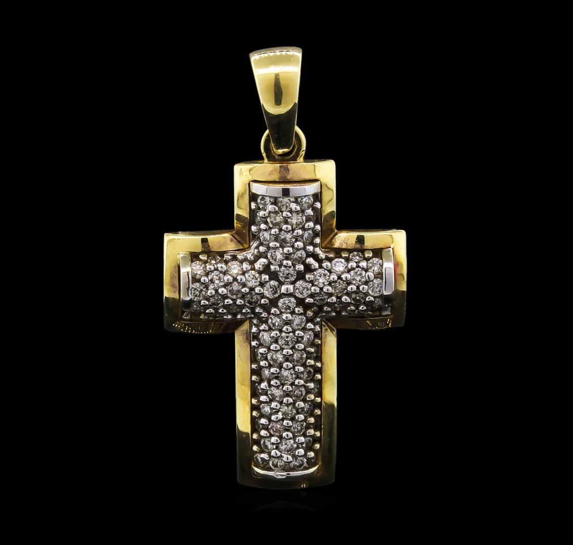 One cross pendant featuring: 14KT yellow gold weighing 3.80 grams containing diamonds with a total approximate weight of 0.70ct.