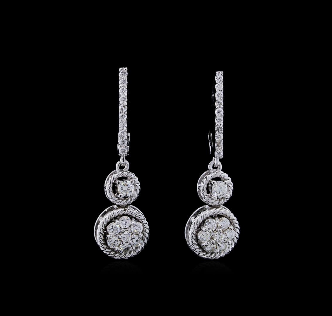 One pair of earrings featuring: 14KT white gold weighing 4.56 grams containing two diamonds with a total weight of 0.15ct and side diamonds with a total weight of 0.55ct.