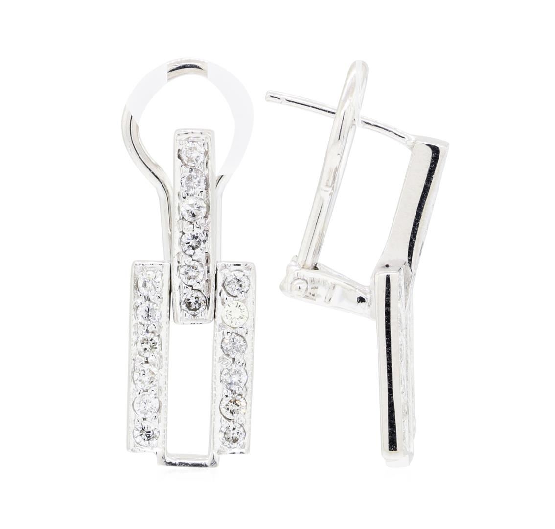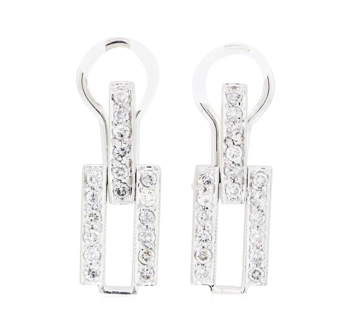 One pair of earrings featuring: 14KT white gold weighing 5.6 grams containing diamonds weighing 0.70ctw.