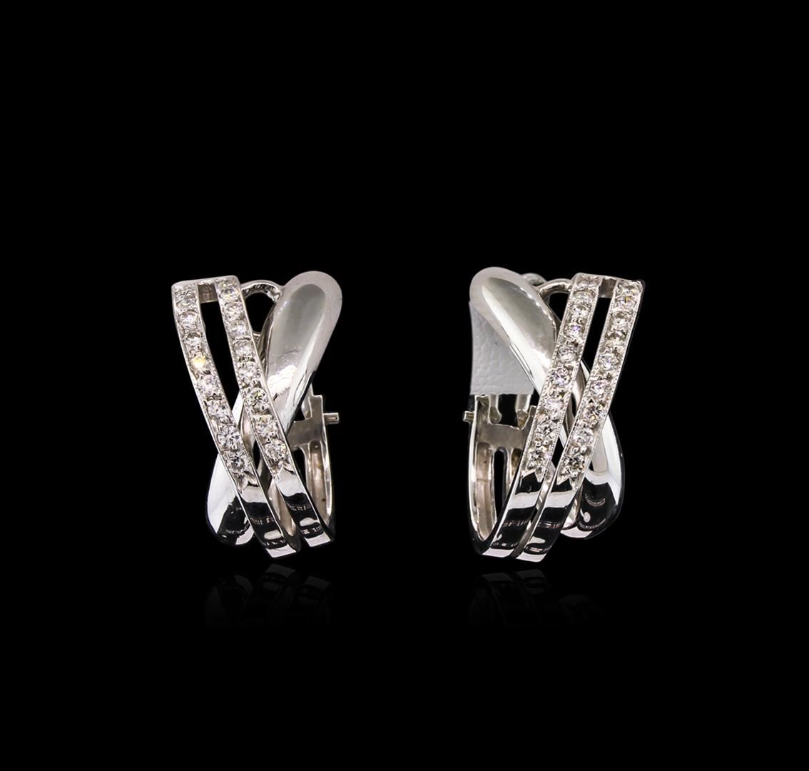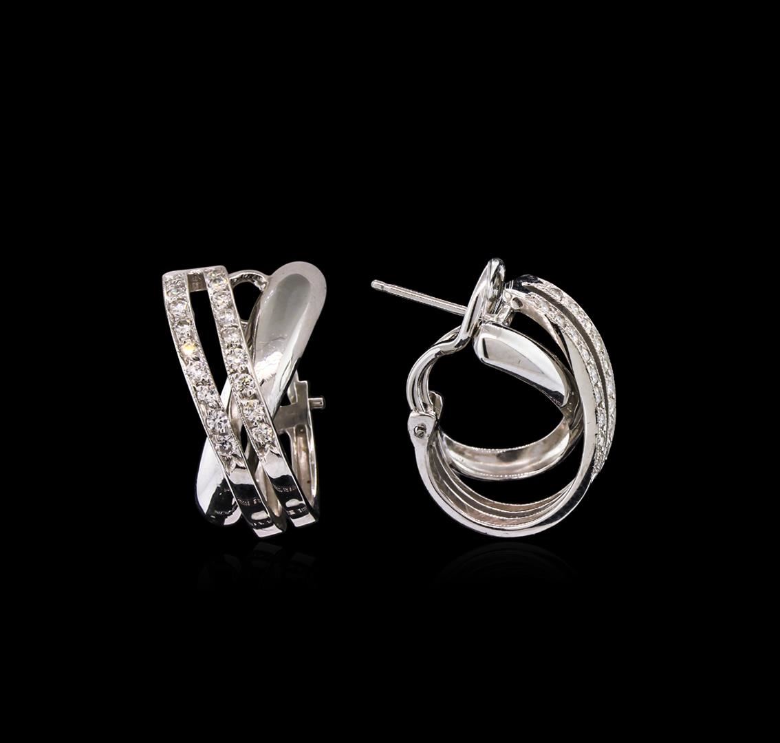One pair of earrings featuring: 18KT white gold weighing 9.48 grams containing diamonds with a total weight of 0.70ct.