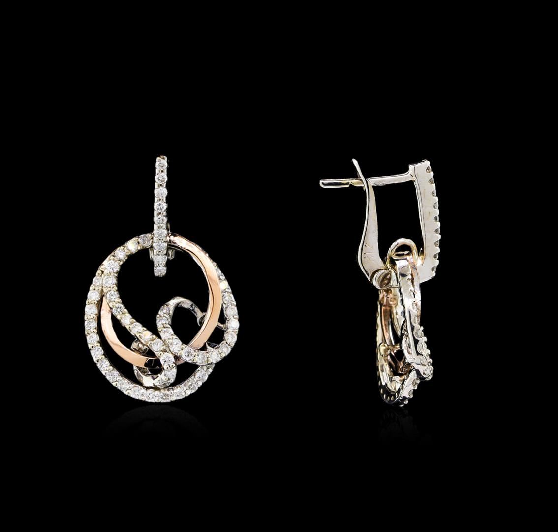 One pair of earrings featuring: 14KT white and rose gold weighing 4.50 grams containing diamonds with a total weight of 0.70ct.