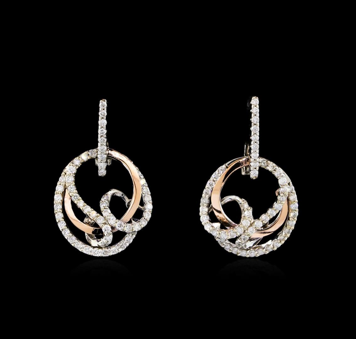 One pair of earrings featuring: 14KT white and rose gold weighing 4.50 grams containing diamonds with a total weight of 0.70ct.