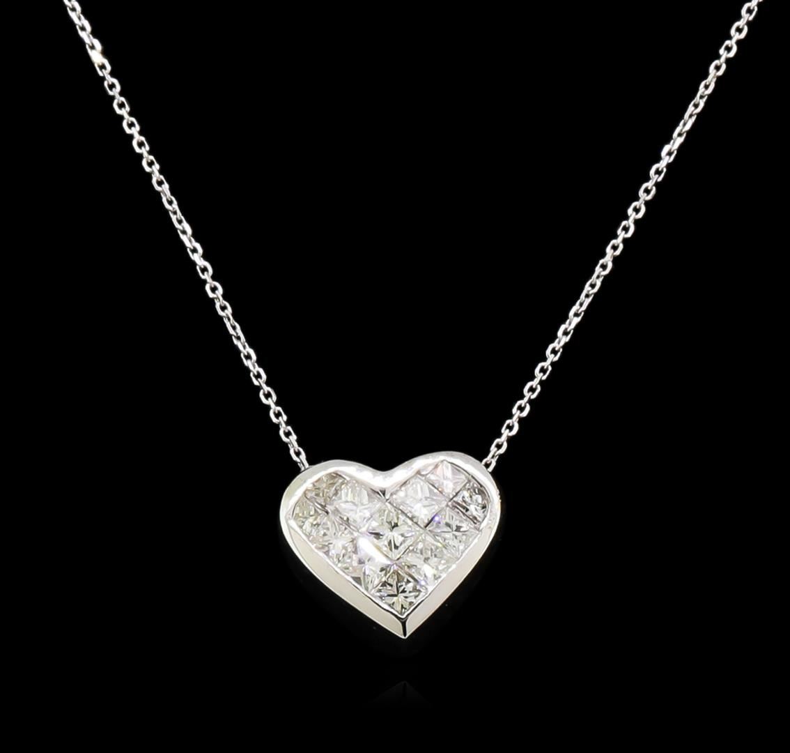One heart shape pendant with chain featuring: 14KT white gold weighing 2.65 grams containing diamonds with a total weight of 0.70ct.