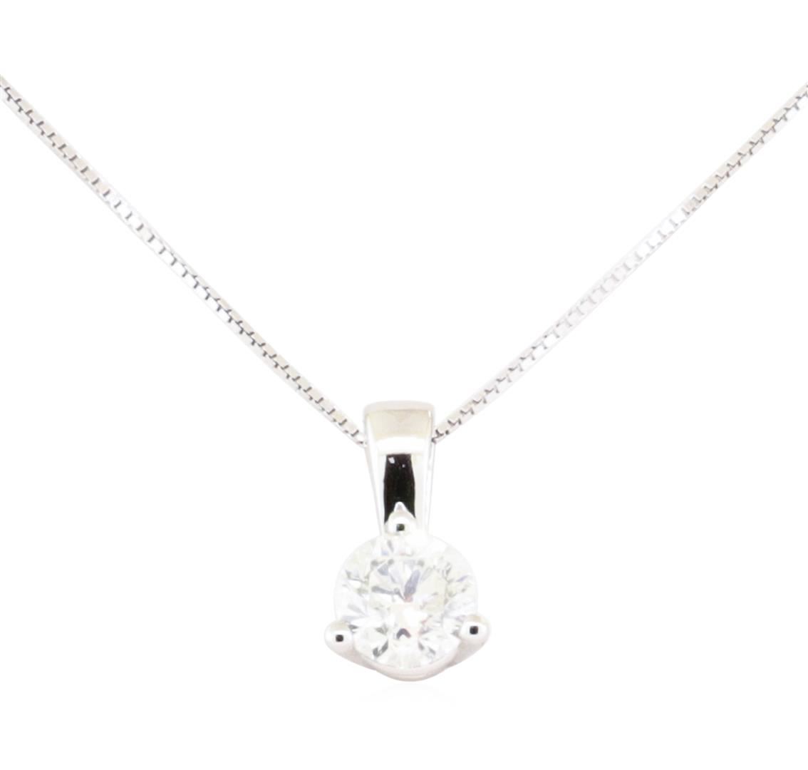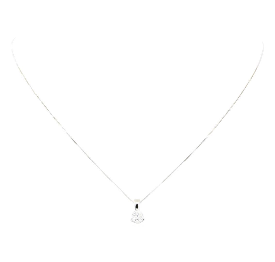 One electronically tested 14KT white gold lady's cast fashion solitaire pendant and chain 16.0' long, 0.60mm square box link with a spring ring clasp with a bright polish finish. Trademark is CID. Identified with markings of '14K'. Condition is new, good GAS Appraised.