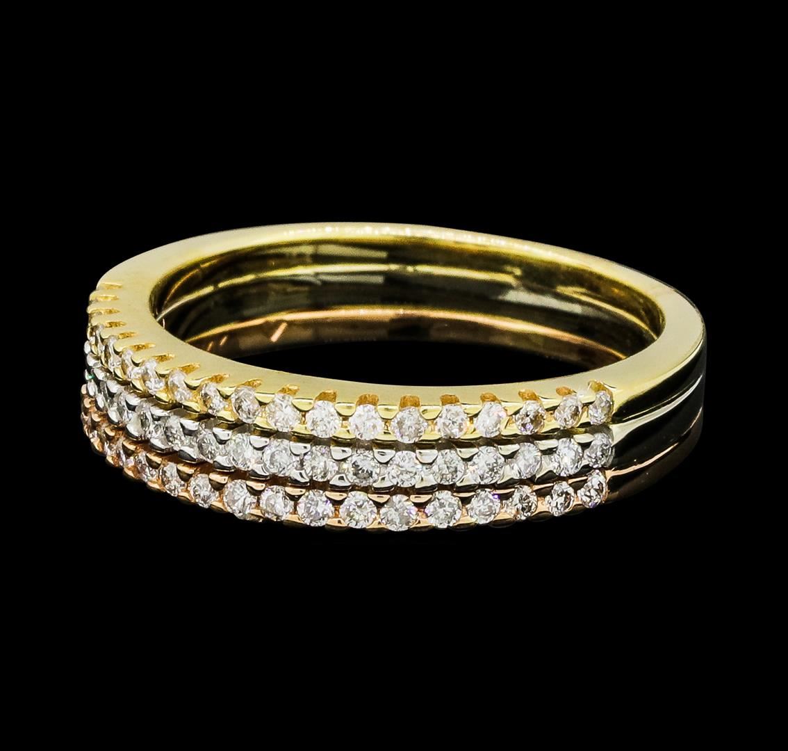Three lady's bands soldered together to make one ring featuring: 14KT rose, white and yellow gold weighing 4.9 grams containing diamonds weighing 0.70ctw.