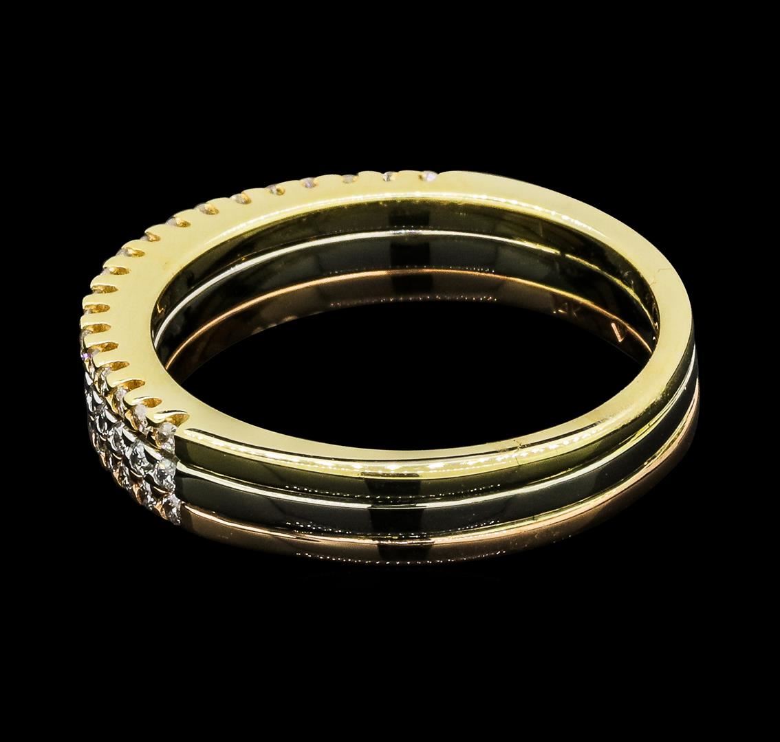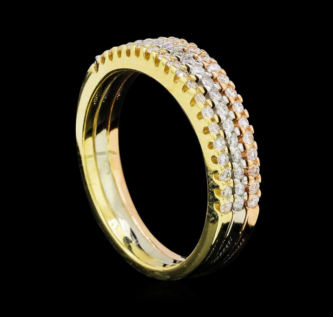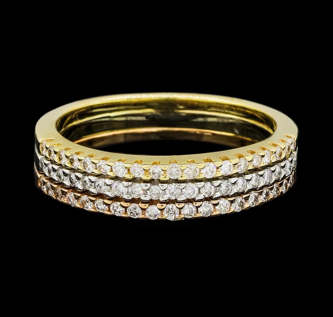 Three lady's bands soldered together to make one ring featuring: 14KT rose, white and yellow gold weighing 4.9 grams containing diamonds weighing 0.70ctw.