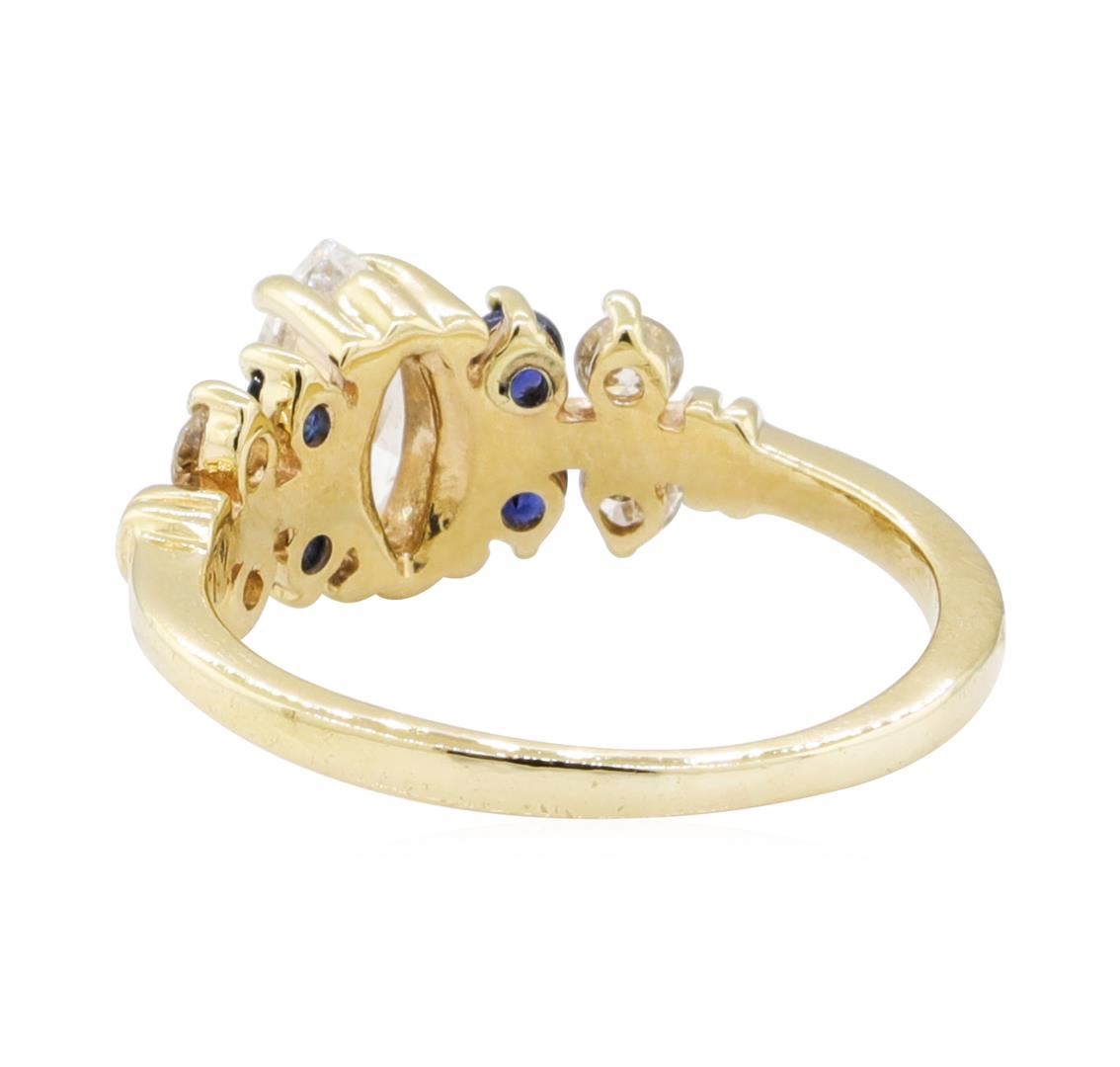 One ring featuring: 14KT yellow gold weighing 2.2 grams containing one marquise diamond weighing 0.40ct, side diamonds weighing 0.15ctw and sapphires weighing 0.15ctw.