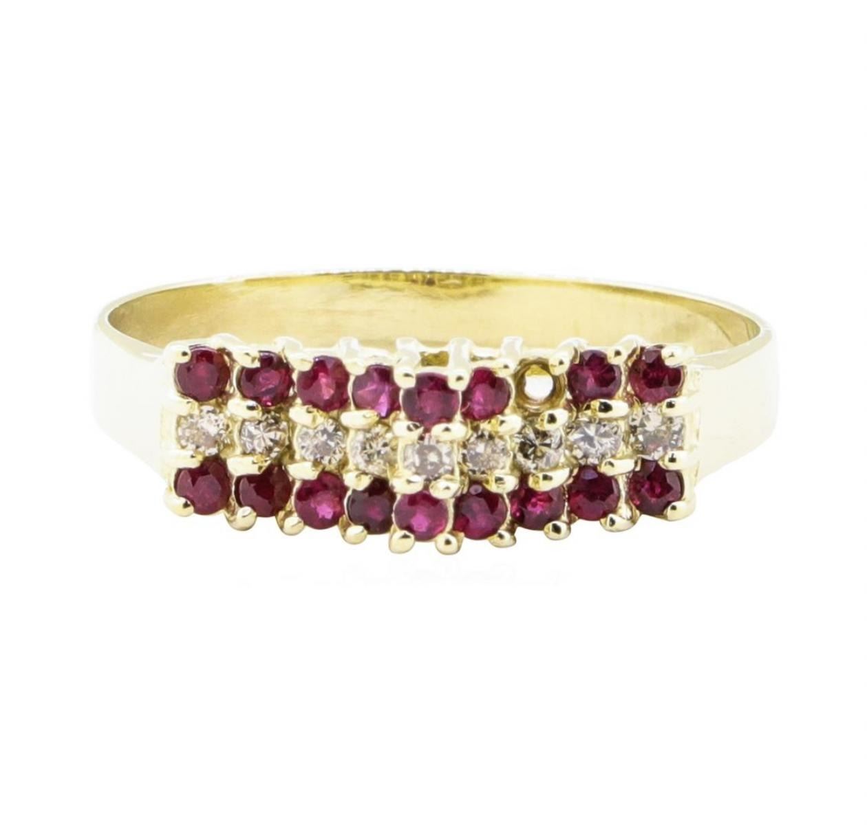 One ring featuring: 14KT yellow gold weighing 3.2 grams containing rubies weighing 0.50 ctw and diamonds weighing 0.20 ctw.