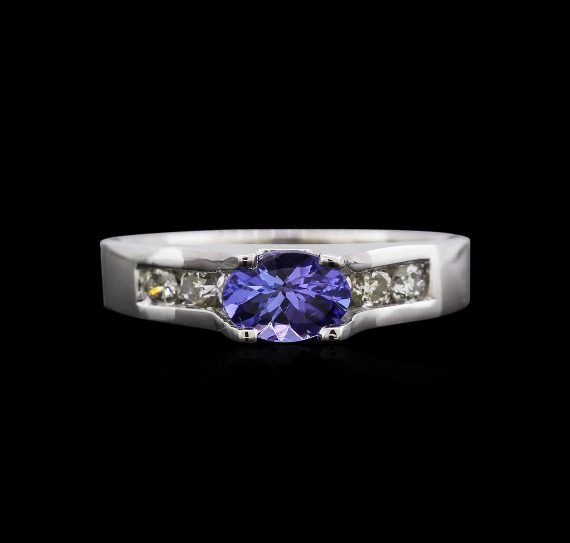 One ring featuring: platinum weighing 7.08 grams containing one tanzanite center stone with a total weight of 0.70ct and diamonds with a total weight of 0.45ct.