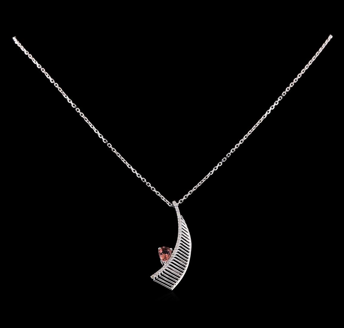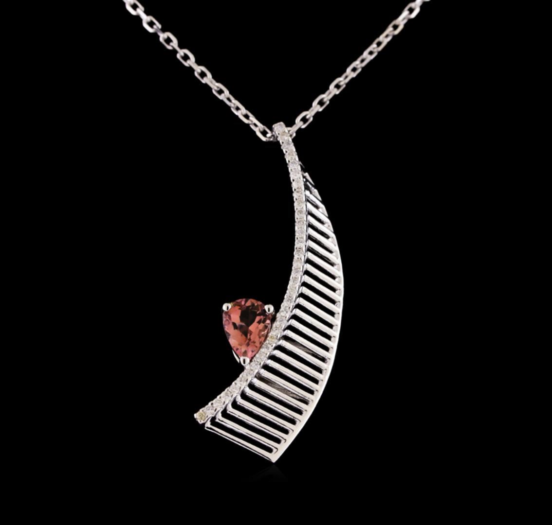 One necklace featuring: 14KT white gold weighing 5.5 grams containing one Tourmaline with a total weight of 3.70ct and diamonds with a total weight of 0.20ctw.