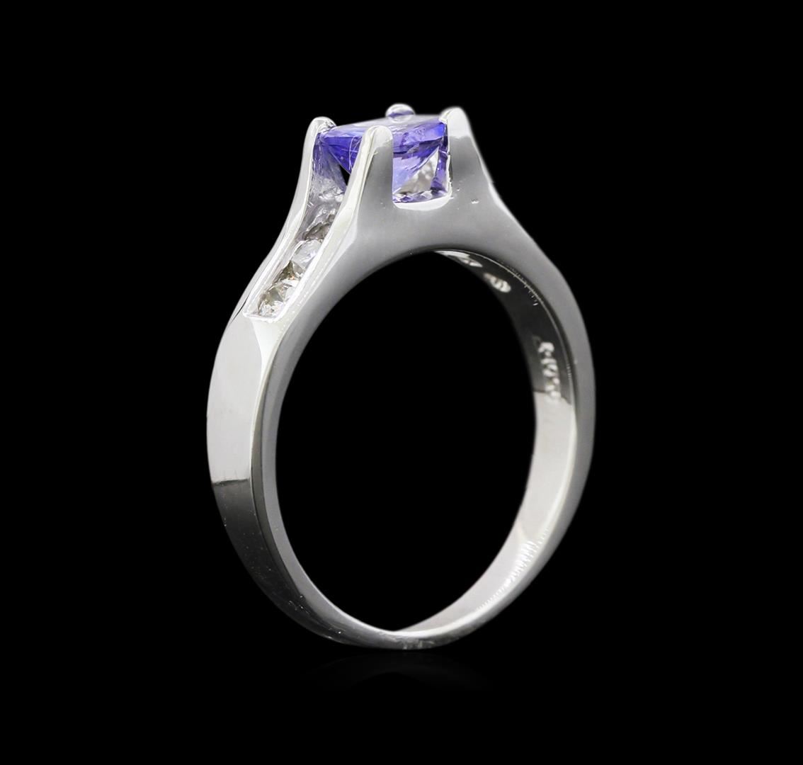 One ring featuring: platinum weighing 7.08 grams containing one tanzanite center stone with a total weight of 0.70ct and diamonds with a total weight of 0.45ct.