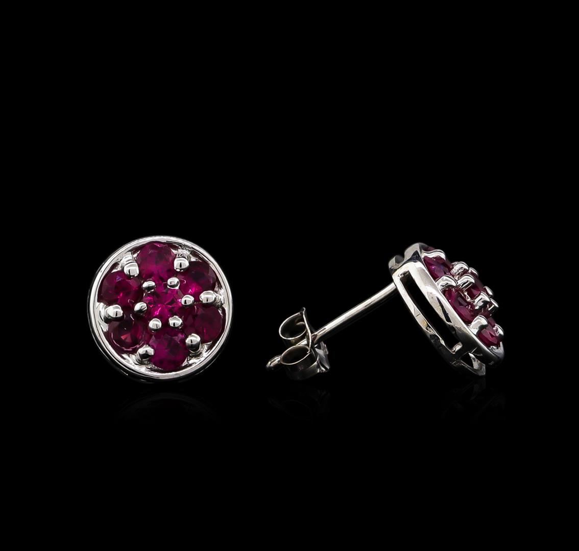 One pair of earrings featuring: 14KT white gold weighing 2.10 grams containing rubies with a total weight of 0.70ct.