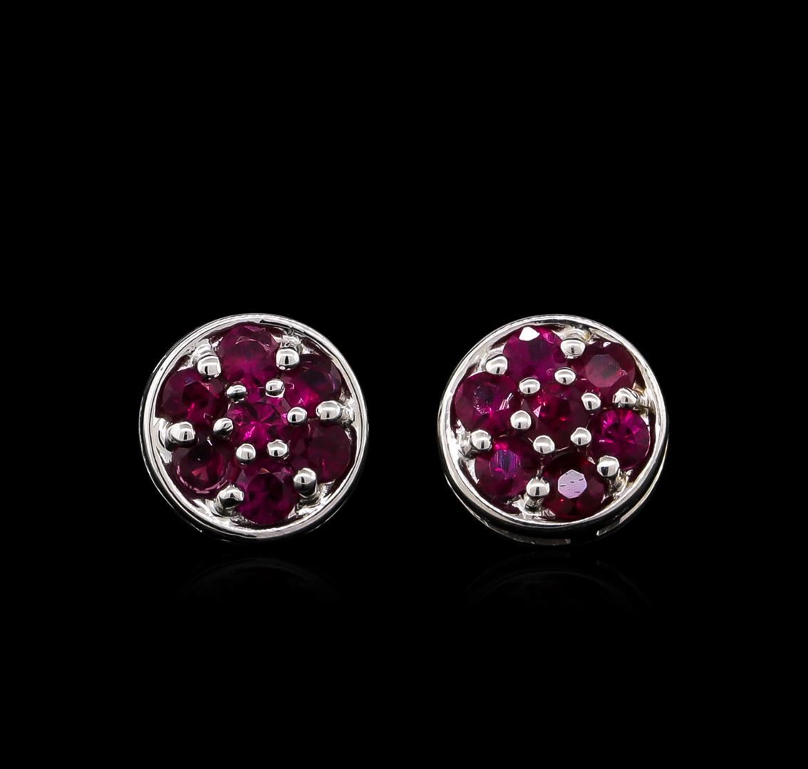One pair of earrings featuring: 14KT white gold weighing 2.10 grams containing rubies with a total weight of 0.70ct.