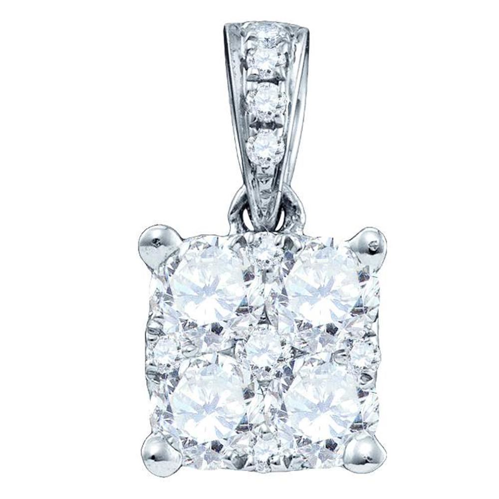 REF-97H4M- SKU: GD77381 ---- 0.71 CTW Diamond Square Cluster Charm Pendant 18KT White Gold
