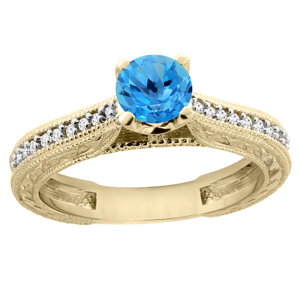 REF-53W2F - SKU: SC-CY404287 ---- 0.71 CTW Swiss Blue Topaz & Diamond Ring 14K Yellow Gold