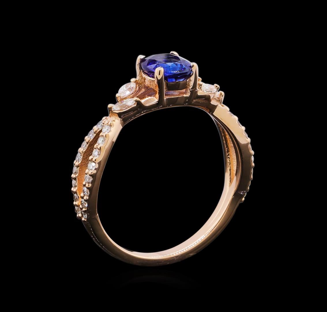 One ring featuring: 14KT rose gold weighing 2.02 grams containing one sapphire center weighing 0.71ct and diamonds weighing 0.15ctw.