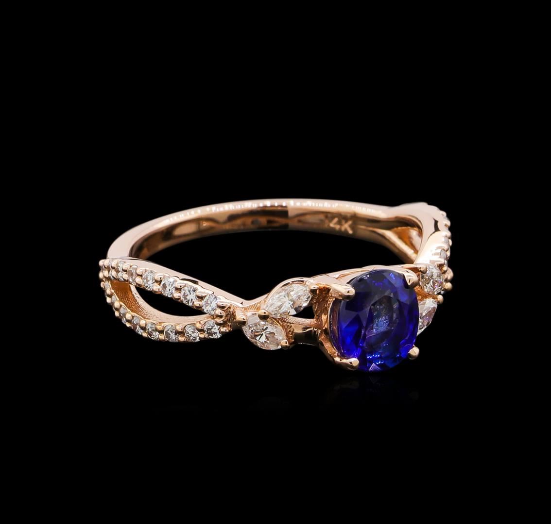 One ring featuring: 14KT rose gold weighing 2.02 grams containing one sapphire center weighing 0.71ct and diamonds weighing 0.15ctw.