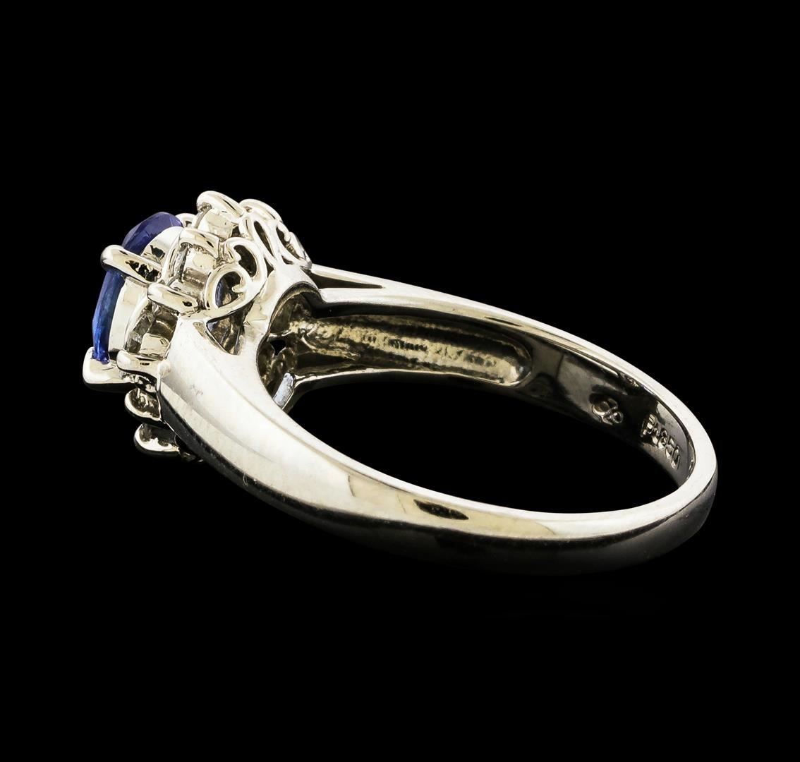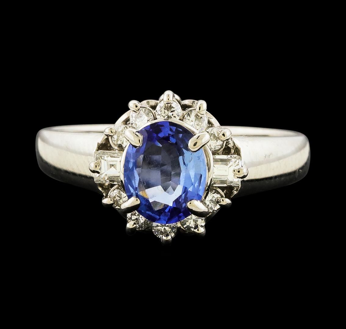 One ring featuring: Platinum containing Sapphire with a total weight of 0.71ct and Diamonds with a total weight of 0.25ct. Total Weight of Ring: 4.1 grams.