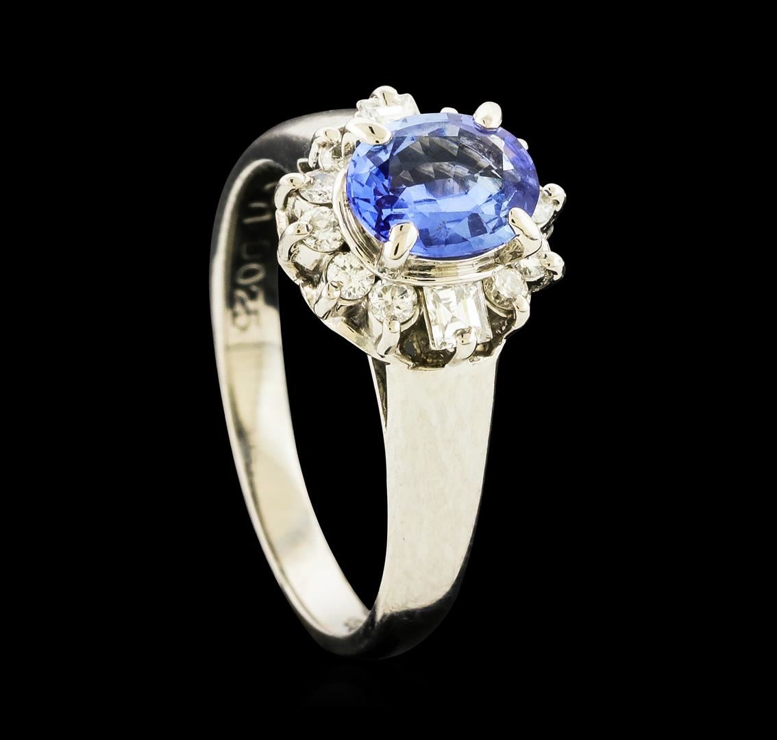 One ring featuring: Platinum containing Sapphire with a total weight of 0.71ct and Diamonds with a total weight of 0.25ct. Total Weight of Ring: 4.1 grams.