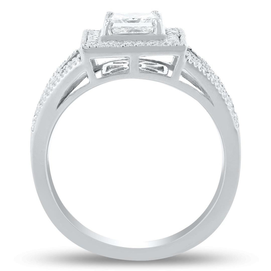 One electronically tested platinum ladies cast diamond unity ring. The featured diamond is set within a diamond bezel supported by diamond set split shoulders, completed by a two and one-half millimeter wide band. Bright polish finish with milgrain detailing throughout. Trademark is Orianne. Identified with markings of "PT950". Condition is new, good workmanship. One prong set square modified brilliant cut diamond, measuring 4.88 x 4.64 x 3.62mm exact weight 0.71ct. Laser inscribed GIA 2181214126. GIA Diamond Grading Report attached. Graded loose prior to setting in the GIA Laboratory, Report #2181214126. Clarity VS-2 Color E Depth 78.0% Table 79.0% Forty-Eight prong set round brilliant cut diamonds approximate total weight of 48 Stones = 0.29ct. Graded in the setting. Clarity VS-1 to VS-2 Color D - F Total Weight of Diamonds 1.00 ct. Total Weight of Ring 7.36 gm Size: 7